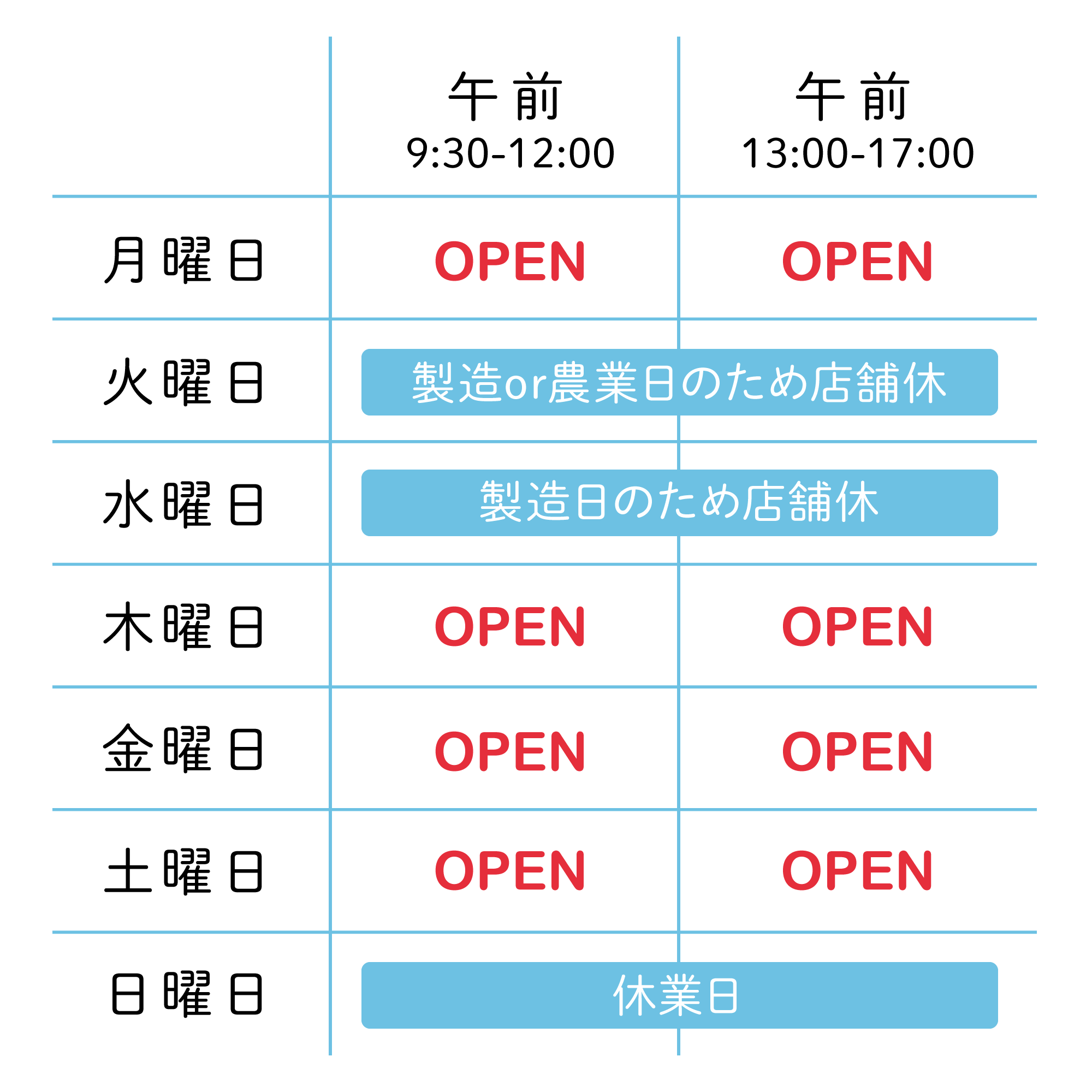 【営業日のお知らせ】
