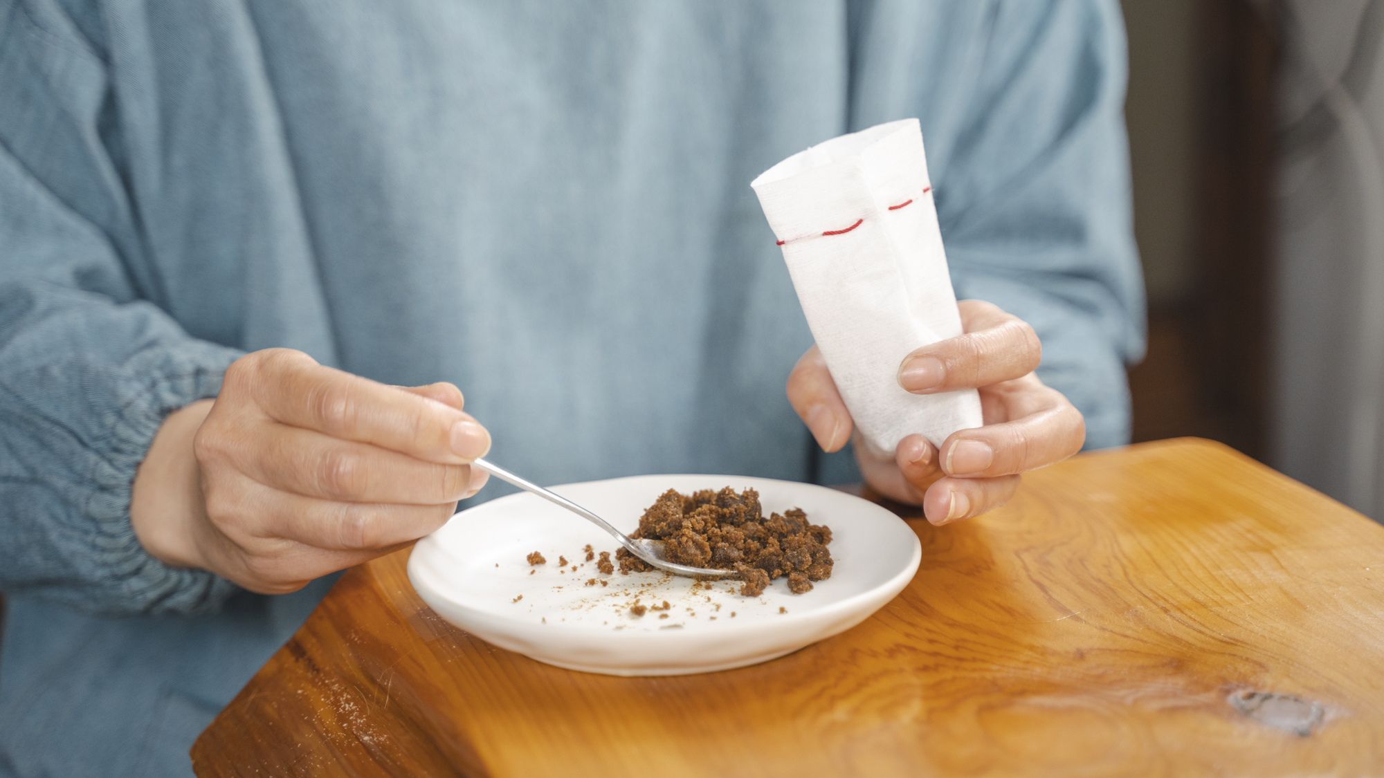 ぬか袋「穂」の糀糠が ゆっくりと熟成していくために 欠かせない 黒糖とハチミツを たっぷり含んだ 薬 ぬか袋「穂」の糀糠が